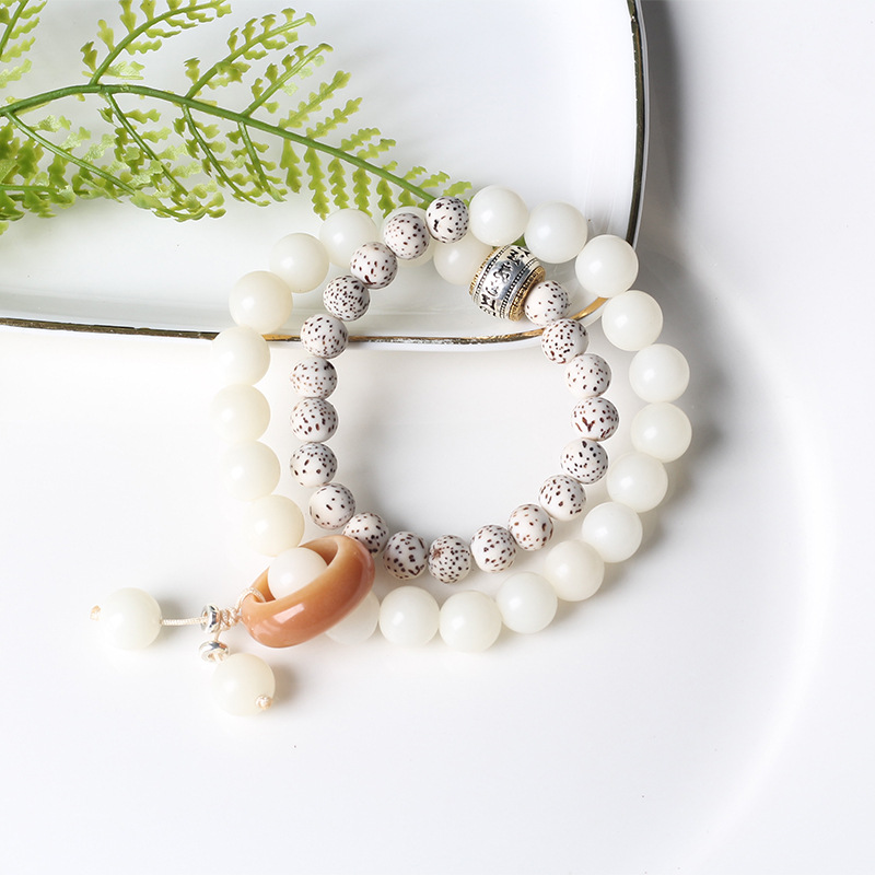 Starmoon white jade bodhi running ring double ring bracelet