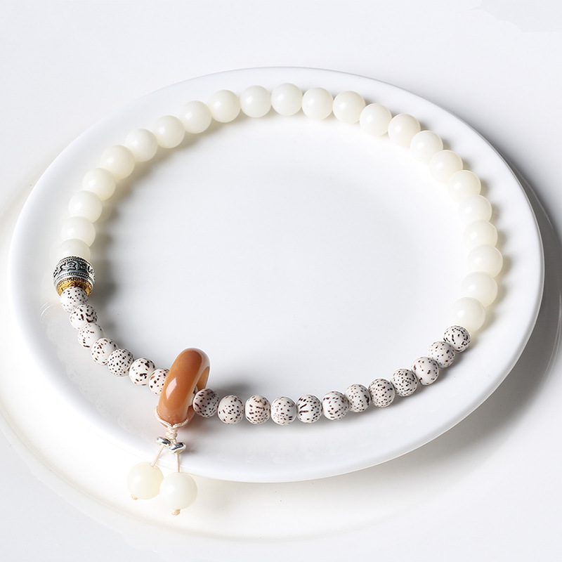 National Wind Star Moon White Jade Bodhi Running Ring Bracelet String Scenic Spot The Same Double Ring Bracelet Retro Buddha Beads Play Hand Ornaments